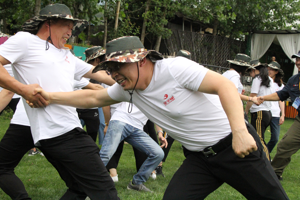9:30左右,游學(xué)一行順利達(dá)到集結(jié)地——仙都兆夢谷。下車后,全體人員便在教練的帶領(lǐng)下進(jìn)入拓展場地,開始了破冰團(tuán)建。隨著公司的壯大,各功能職責(zé)明細(xì),各職能崗位分工,容易產(chǎn)生各自為政的不良局面。破冰,心門不開,法門不入,就是要打破原有的區(qū)域、界限,從新洗牌,消除我們彼此心中的隔閡,組建一支支全新的小團(tuán)隊(duì),為完成下一個(gè)目標(biāo)而同心同德。團(tuán)建,取隊(duì)名、設(shè)口號、建圖騰、做展示,通過一系列的活動(dòng),增強(qiáng)新團(tuán)隊(duì)的使命感和自豪感,在展示中營造“比、學(xué)、趕、幫、超”的濃厚氛圍,引導(dǎo)員工樹立“敢打必勝”的信念。