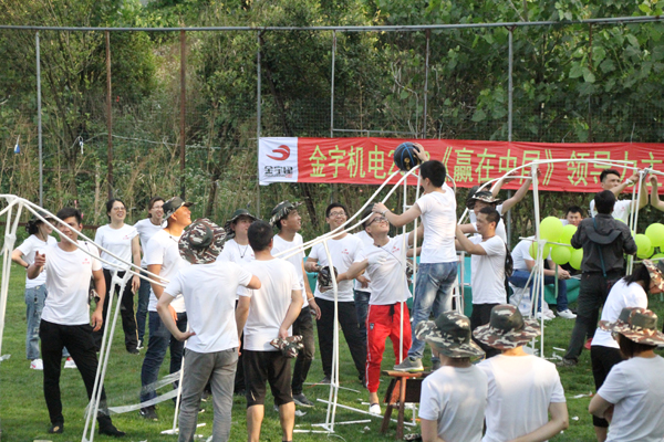 下午,又先后做了“瘋狂過山車”、“神龍取水”、“驛站傳書”三個(gè)項(xiàng)目。瘋狂過山車是一個(gè)大型的、全員參與的項(xiàng)目,要求我們每一隊(duì)必須在隊(duì)長的帶領(lǐng)下,在規(guī)定的時(shí)間里完成規(guī)定的工作任務(wù),并確保質(zhì)量。從創(chuàng)意設(shè)計(jì)到材料保障、從基建工程到信息交流、從工程裝飾到后勤支援,人人都各司其責(zé),既確保了本隊(duì)工程的質(zhì)量,又確保了前后工序、前后單位的絲絲入扣,嚴(yán)絲合縫。神龍取水,是在分工不同的情況下如何進(jìn)行有效的溝通,領(lǐng)會團(tuán)隊(duì)默契達(dá)成過程的幾個(gè)階段,明白個(gè)人的利益應(yīng)當(dāng)如何與團(tuán)隊(duì)的利益達(dá)成一致,并體驗(yàn)在語言溝通有障礙的情況下,如何進(jìn)行溝通交流,達(dá)成共識。驛站傳書,體現(xiàn)的是團(tuán)隊(duì)的整體性,缺一不可,每一個(gè)人都模擬著產(chǎn)、銷、研、供、財(cái)?shù)雀鱾€(gè)模塊,在傳遞信息的過程中若出現(xiàn)任何一個(gè)環(huán)節(jié)的疏漏都不行,并且展現(xiàn)做好自己對于團(tuán)隊(duì)的重要性。