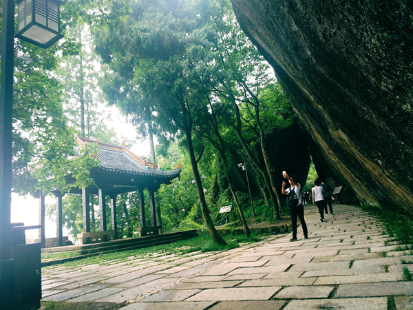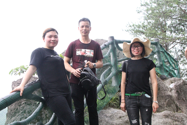 27日早上,大家在簡單進(jìn)餐之后,便踏上了前往仙都景區(qū)的旅游大巴。仙都風(fēng)景區(qū)坐落于縉云縣城東7公里處,自隋代起聞名于世。仙都風(fēng)景區(qū)分布于東西約10公里的練溪兩岸,由鼎湖峰、小赤壁、姑婦巖、倪翁洞芙蓉峽等游覽區(qū)組成,計(jì)有72奇峰,18處名勝古跡。鼎湖峰景點(diǎn)是整個(gè)風(fēng)景名勝區(qū)的核心,我們自然不會錯(cuò)過。鼎湖峰,又稱天柱峰,它東靠步虛山,西臨練溪水,狀如春筍拔地而起,直插云霄,高約160余米,人們嘗謂天下第一峰。峰頂有小湖,湖周蒼松翠柏掩映。相傳軒轅黃帝曾置爐于峰頂煉丹,丹成黃帝跨赤龍升天時(shí),丹鼎墜落而積水成湖,故名鼎湖。雨后鼎湖也是別具一格的美景。鼎湖至今無路可攀登,僅有藥農(nóng)架繩索飛渡峰頂采藥。白居易有詩云:“黃帝旌旗去不回,片云孤石獨(dú)崔嵬。有時(shí)風(fēng)激鼎湖浪,散作晴天雨點(diǎn)來”。大家在贊美大自然的神奇之余,都紛紛拿出相機(jī),留下與如此鬼斧神工的景色如此親近的瞬間。下午,又游覽了小赤壁、朱潭山等景點(diǎn)。