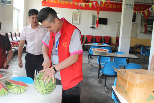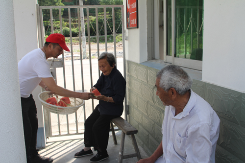 慰問中,黨支部成員們將好心人捐贈給黃巖慈善義工隊的西瓜切好,熱情地送到老人們的手中,并詳細(xì)詢問了老人們的生活、身體狀況等,叮囑老人保重身體,送上端午祝福。老人們臉上洋溢著幸福的笑容,對大家的善舉深表感謝。