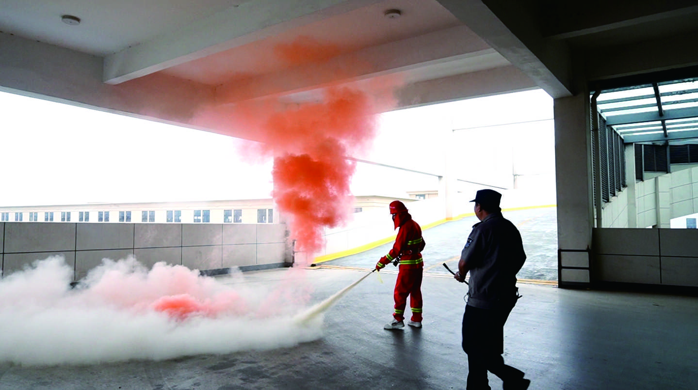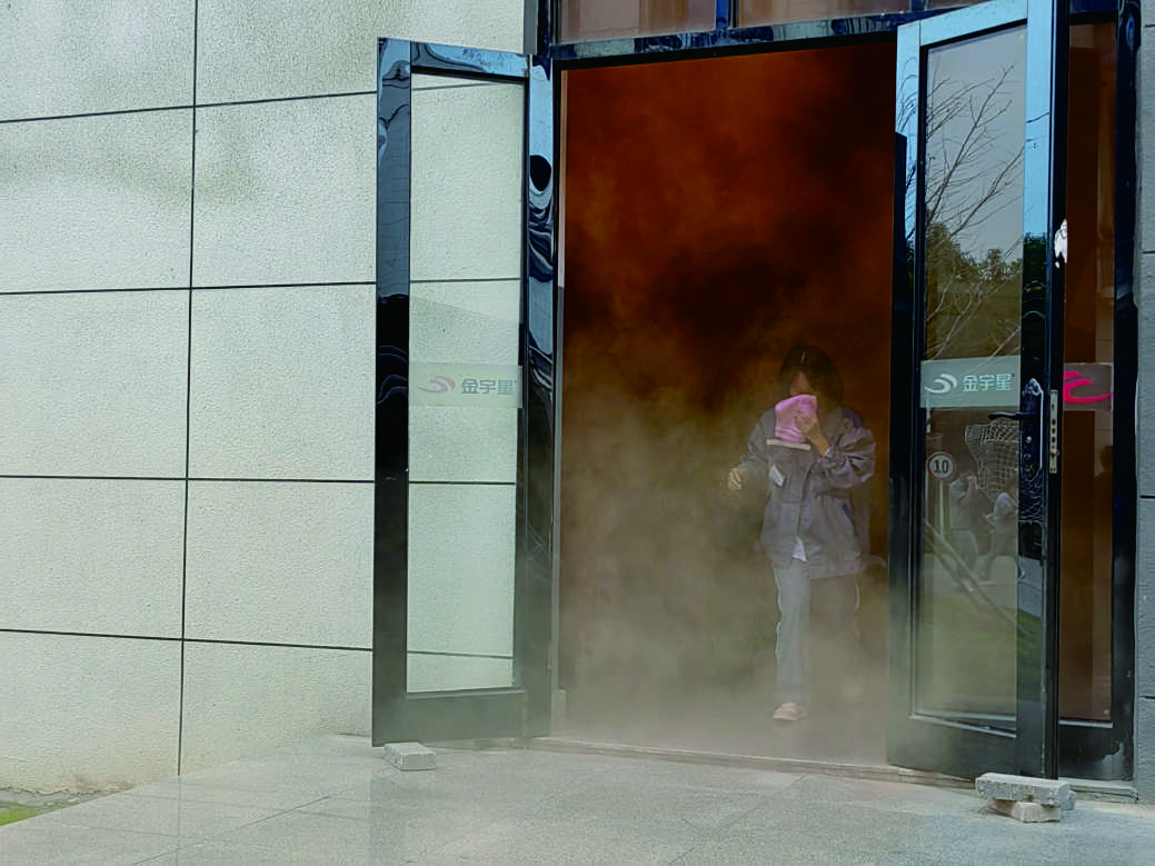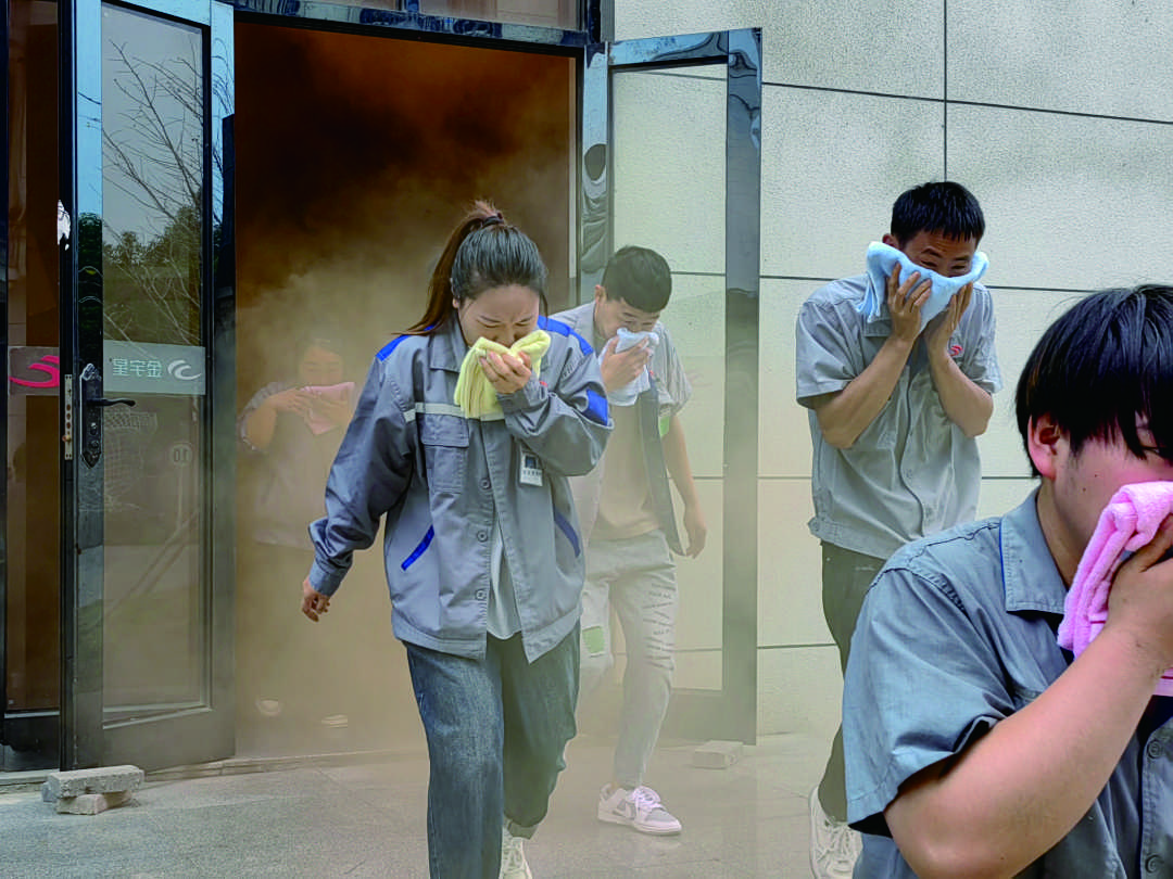 11月9日上午11時(shí),園區(qū)內(nèi)煙霧彌漫,警報(bào)聲響起。按照“安全第一、就近逃生”的疏散原則,各部門(mén)迅速按照緊急預(yù)案的疏散路線,拿起濕毛巾,捂住口鼻,彎腰低身,分樓層、分區(qū)域有秩序地撤離,快速疏散到戶外空曠處集合。各部門(mén)清點(diǎn)人數(shù)后,確定全體員工均成功撤離。